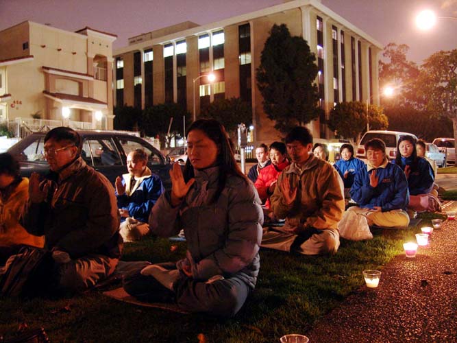 【明慧网2004年1月23日】2004年1月20日,美国第七巡回法庭接受了法轮功学员对有关在芝加哥起诉江泽民一案的上诉材料。当日晚间,洛杉矶部分法轮功学员在中领馆前烛光守夜、发正念,声援对江泽民的起诉。