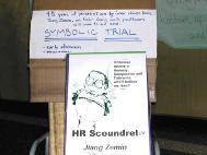 在事实的基础上,一位大赦国际成员扮演的法官作出以下裁决:“我们发现被告是有罪的。本法庭注意到了这场迫害强迫人们背叛他们的良心、尊严和对真善忍的信仰。本法庭注意到了江及其“610”组织编造无数的谎言并将这些谎言散布了到了中国和世界。这些谎言导致了无数的人民不理解甚至歧视法轮功学员。所有知道真相的人可以看到对法轮功的迫害是由人性缺点所误导和推动的。这些人性缺点包括妒嫉、贪婪、恐惧和自私。所有知道真相的人可以看到法轮功学员表现了高尚和勇气,这些将永远被人们记住。他们的坚强,勇敢和能力抵挡了人们本不应该承受的迫害。”