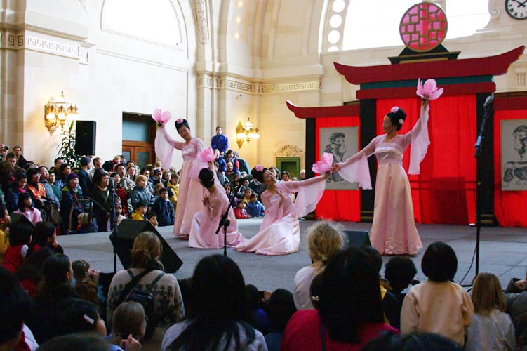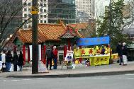 而在户外不远处的庆喜公园内,另外一些法轮大法学员也在演示功法和讲清真相。在熙熙攘攘的欢庆新年的人流中,在严冬已逝的早春里,学员们争取任何一个机会来让更多的人们了解法轮大法好,了解这场邪恶的迫害。帮助越来越多的人们,在这个历史的特殊时刻,做出正确的选择。