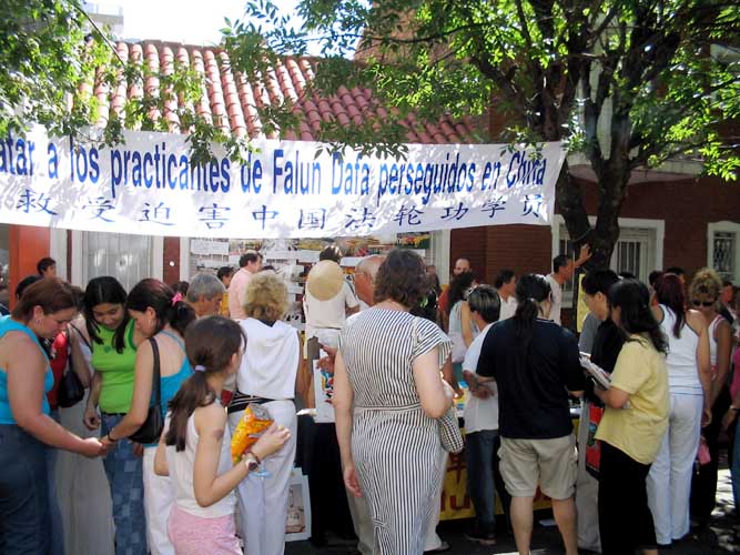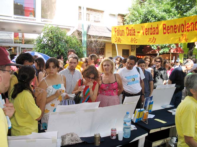 圣安东尼奥市德州文化研究所今年1月24日举办的亚洲节,很多人聚集在大法的展位前,有的要学功,有的要资料,越来越多的人们主动地了解和关注法轮功在中国被迫害的情况,象“见证”、“善”这样的大本刊物很受欢迎,真相光盘也很快被取完。学员们同时举行了“和平花瓣”的折花活动,每一朵花都代表着一份祝福送给那些由于江氏集团迫害法轮功而失去父母,失去学业的孩子们。一位中学老师要了多份“和平花瓣”的材料说要发给她的学生。当活动结束我们在收拾展位时,一位十一二岁的西人少年走过来和学员说:“我看到许多佛在这儿,清清楚楚,你知道吗?”