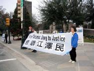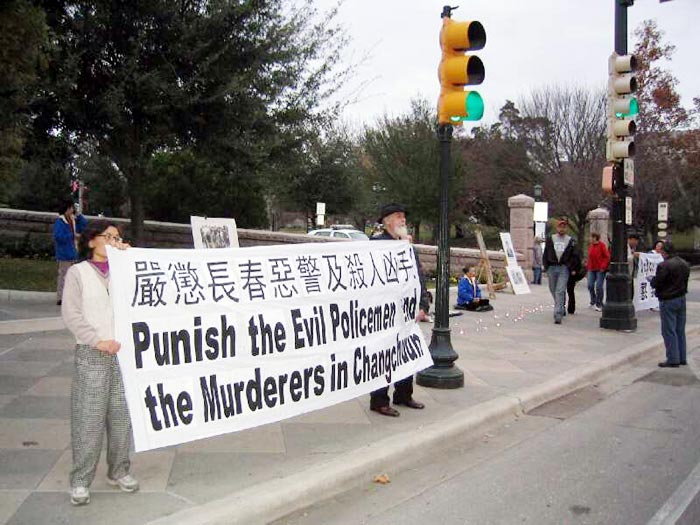 奥斯汀市最大报社也对此一事件做了报导。一位市民从报上得知此事后,特地志愿赶来表示支持,并参与拉起了“严惩长春恶警及杀人凶手”的横幅。