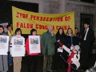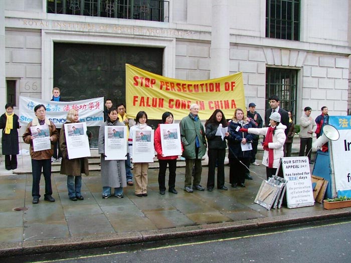 英国大法学会代表海伦首先宣读了英国大法学会的声明,声明中强烈谴责江氏集团对法轮功学员的又一最新虐杀,要求中国政府严惩有关凶手及责任人,法办这场迫害的元凶江泽民及其帮凶们。随后,一名大法弟子宣读了“全球营救受迫害法轮功学员委员会”就刘成军受迫害一案致全球华人的公开信,信中呼吁各国政府及人民和国际组织一起来制止这场在中国的群体灭绝性迫害。