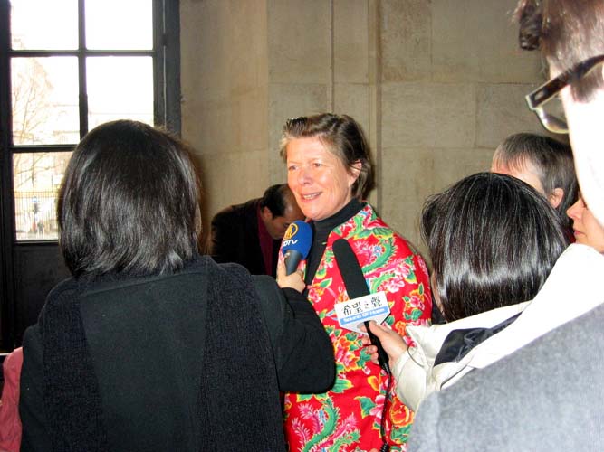 顺利递交诉状后,奥泽-飞丽宗律师在巴黎最高法院(Palais de la Justice)的大厅举行记者会。飞丽宗律师表示,她刚刚递交的诉状指控正在法国进行正式访问的孙家正运用媒体及文化手段煽动酷刑及铲除法轮功,下令销毁所有法轮功书籍和音像资料、封锁监控法轮功学员的网络通讯、阻止中国民众了解西方媒体对法轮功的真实报道。