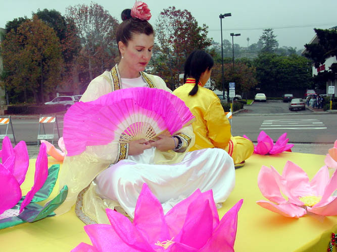 【明慧网2004年1月30日】2003年12月7日,加州圣地亚哥地区的法轮功学员参加了在著名的海滨风景旅游地拉荷亚(La Jolla)举行的节日游行,法轮功队伍的祥和美好深受当地民众的喜爱,法轮功花车获得组委会颁发的“色彩最鲜艳奖”(The Best Colorful Award),组委会成员并多次邀请法轮功继续参加明年的游行。