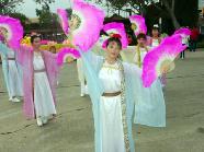 在游行的当天,许多学员很早就来到游行的出发地点,默默地装点花车和做其它的各项准备工作,同时还取得了可以在游行过程中发放资料的许可。在游行中,由花车、舞蹈队和腰鼓队组成的法轮功队伍格外引人注目,在游行沿街所设的十多个广播点不停地向观众介绍法轮功及其所获得的“色彩最鲜艳奖”。令两名发放资料的学员极其欣慰的是,人们想要了解法轮功的心非常地迫切,经常是四、五只手同时伸过来索要大法资料,令学员应接不暇。