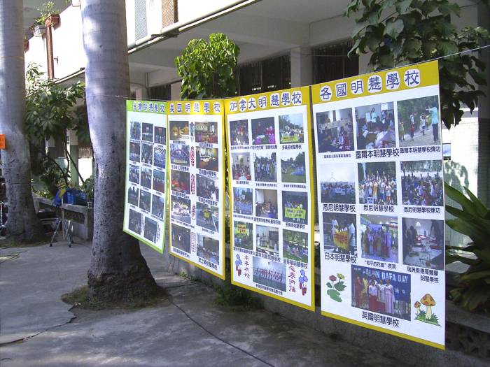 台湾中区有多位任职在教育界的法轮功学员,其中有大学教授、国小校长、国小老师、幼稚园老师等。他们与关心孩子人格,生活教育的家长一起,共同萌生一个理念,创立明慧学校。明慧学校致力推广教导学生以“真、善、忍”为标准,重德行善提高心性为至要,并致力于弘扬中国传统文化。学校开设的课程有阅读、艺术、历史人文、音乐、科学、养生等,寓教于乐,培养孩子高尚的情操,辅以简易有效的法轮功功法,达到生慧增力,心静身健的目的。让孩子在接受平日学校义务教育的课程之外,有一个洗涤身心的桃花源地。
