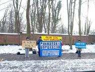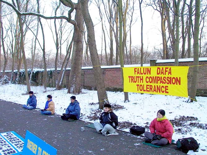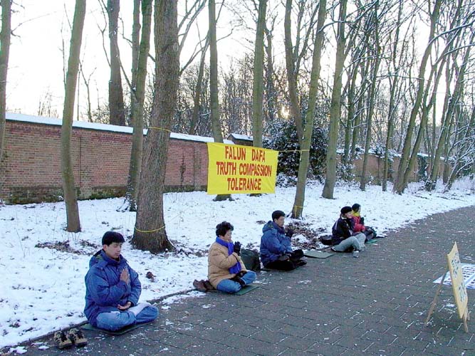 近日来,荷兰天气异常;原本温暖的气候突下大雪,气温急剧下降。执行公务的警察,看到我们在寒冷的天气里静坐,就下车询问我们的坐垫是否保温,当他们知道刘成军被害的情况后,接受了有关资料并祝我们成功,希望尽快结束这场迫害。来往的行人得知刘成军被害致死的消息非常震惊。骑自行车的人看到横幅后,为我们的行动竖起拇指,甚至有的汽车司机鸣笛向我们致意。