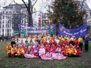 2004年1月1日,从英国各大城市陆续赶来的法轮功学员汇集在伦敦,参加一年一度的游行表演。许多世人向法轮功学员致以诚挚的问候,许多中国人都欣然接受了法轮功学员送给他们的新年祝福和真相材料。一位中年妇女紧紧地握着一位法轮功学员的手,激动地说:“你们的表演真好,你们是最好的。”派发真相材料的法轮功学员手头的材料根本不够发。