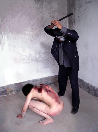 以下照片为根据当事人描述,由法轮功学员重组的当时迫害的情景: