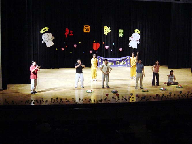 台湾中山大学法轮大法社团迎新晚会上洪法(图)