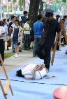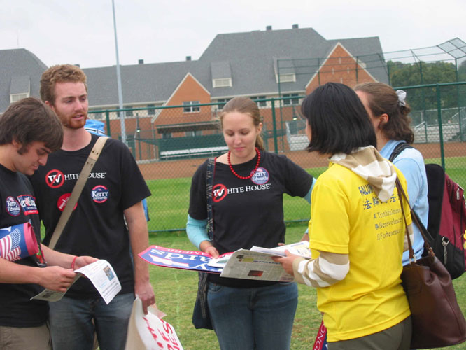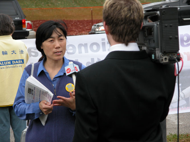 新加坡大法弟子的曼哈顿之行:在中国领馆发正念时,一个穿着蓝色制服的白人男子来到跟前,手里拿着“今日法轮功”的真象报纸,他说,“我一直在看报纸,太悲惨了。我很难过。我支持你们。”我们小组坐地铁去活动地点,一位高个子同修把真象图片挂在身上,在地铁通道和车厢里吸引了很多人,当看到有人注意或阅读挂在学员身上的图片时,另一位学员就上前打招呼,并递上一份真象报纸。