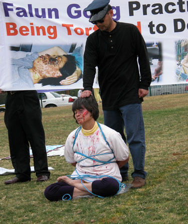 四川省乐山市农业局大法弟子张卓2002年6月7日被警察绑架,次日警方称张卓自缢死亡。家属发现张卓遗体疑点:1、右鼻孔和双耳中发现一些血迹。2、双眼下眼睑有出血点,是用针扎出来的。3、的牙齿表面和牙缝中发现明显血迹。4右侧脖子上发现有一个1.5x3.0cm 的血印,距离所谓“缢痕”有7─8cm距离。5、腰部有青紫的痕迹,两小腿有出血现象。6、手背上有1.5x1.5cm的伤痕,边缘太齐,凹陷较深,不像是擦伤所致。7、左侧肘关节内侧上部有一个1x3.5cm的伤痕,不可能与肘关节同时擦伤。8、6月8日上午,市中区公安局毛加新局长在尸检报告没有出来之前,反复打电话催张卓家属马上火化张卓遗体。