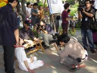 重庆北碚大法弟子张培金和王光林于2004年8月19日晚被恶警绑架,当晚,张培金被刑讯逼供,头和前额有几条血口子,王光林被打昏死1个多小时。第二天,二人被劫持到北碚看守所,他们一直绝食抵制迫害。10多天后被转到重庆市第九人民医院分院,一天24小时都被戴上脚镣手铐躺在床上。绝食绝水31天,9月19日,王光林正念走脱,流离他乡。张培金由于长时间的野蛮鼻饲及注射大量不明药物,早已生命垂危,但直到10月初,眼看都不省人事了,才被恶警甩给家人。回家都快一个星期了,张培金每天只能勉强喝一点点水维持生命。