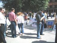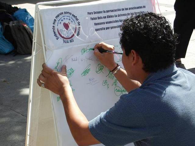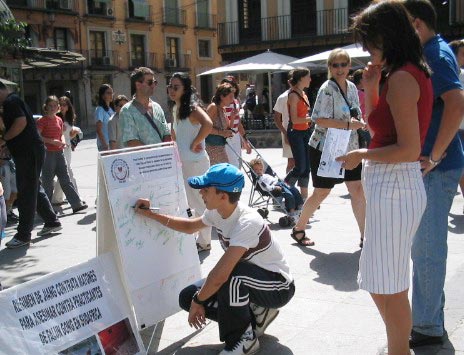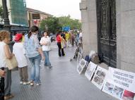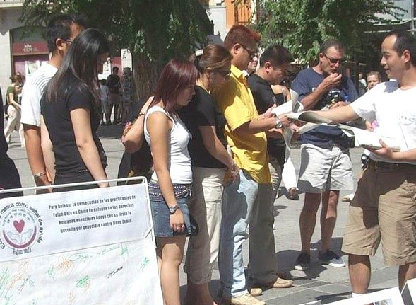 很多西班牙人在看了迫害图板后,纷纷表示愤慨与不解,并纷纷谴责江××集团的邪恶行径,很多人要求签字声援,有两位衣着考究的老年女士一再问我们什么时候再到这里来,她们说要叫上朋友们也来签字……