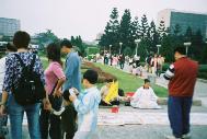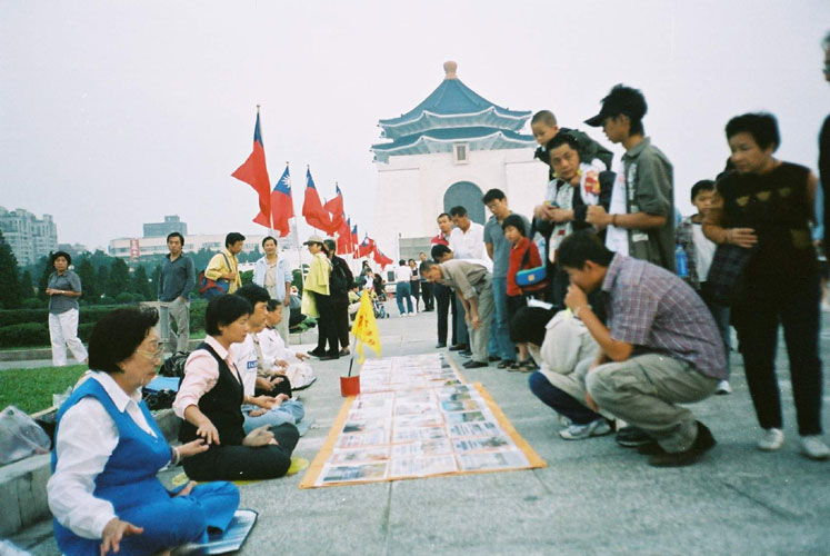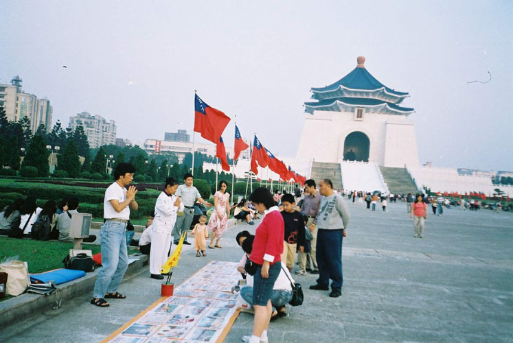 台湾法轮功学员双十国庆日在“中正纪念堂”园区洪法,吸引众多游人:
