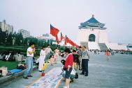 沿路旗帜飘扬,一進“中正纪念堂”园区,万头钻动好不热闹,除了民众外,警察也三步一岗,五步一哨的布满整个广场,后来才知道国庆晚宴要在这里举行,为维持安全与秩序,因此布署了相当的警力。
