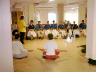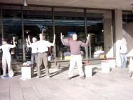 当晚,在最后一个洪法地点,学员向一群人介绍法轮功,他们多数都尝试着学习功法。最后,他们向学员表达感谢,并表示将到当地炼功点开始学炼法轮功。