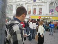 ![]() 在都柏林举办酷刑展,观众驻足观看真象展板 | ![]() 学员在都柏林酷刑展上讲解 |