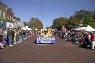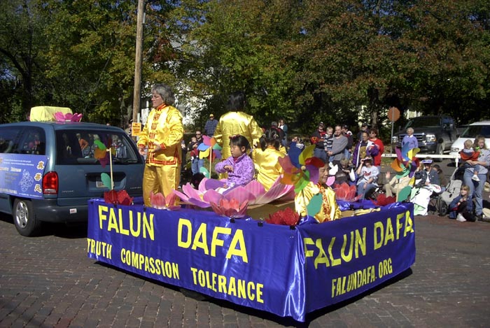 【明慧网2004年10月19日】2004年10月16日,美国堪萨斯州(Kansas)法轮功学员参加了本州著名的枫叶节(Maple Leaf Festival)游行。枫叶节是堡德文市(Baldwin City)一年一度的盛大节日 。10月16日上午,当地以及邻近地区的居民们涌上街头观赏金秋时节的枫叶以及盛大游行。