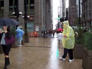 (明慧记者黄凯莉纽约报道)随着冬季将近,纽约曼哈顿的天气也渐渐变冷。10月19日天气突然变得恶劣,刮起狂风、下着大雨。来自世界各地的法轮功学员冒着风雨在曼哈顿街头,继续揭露江集团迫害法轮功的暴行,呼吁各界制止迫害。