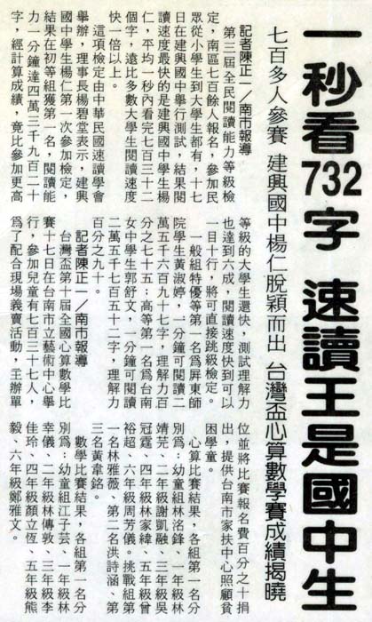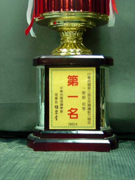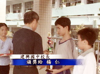 ![]() 杨仁获得速读第一名 | ![]() 建兴国中校长颁奖 |