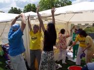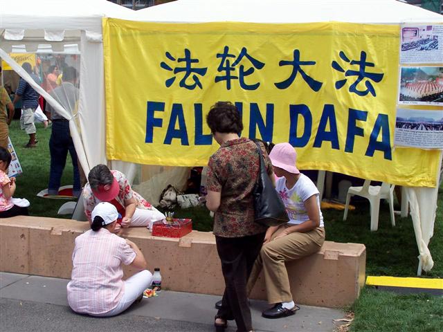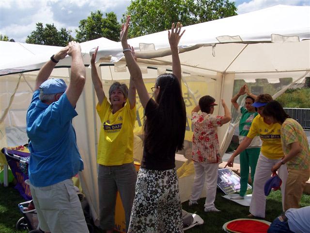 活动有一个规定就是我们不可以展示和分发任何有关迫害的资料,因为这一天主要是为娱乐表演而设计的。然而我们仍旧可以和人们谈中国的形势而且这是一种讲清真象的最好方式。在人们看到感受到学员及功法所带的祥和能量和大法的美好后,他们对大法在中国所遭受的迫害非常震惊。各国人民对大法的广泛支持清楚的证明了“真善忍”是普遍真理。