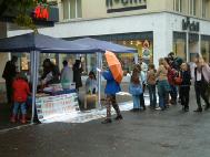 7.20那天,警察们怕我们去北京,在各个路口都设了卡,想抓我们,结果扑了空,那天,学员们在市内到处散发真象资料,那是世人见到的第一份真象资料,觉得还挺新鲜,所以很多学员都是公开发的,面对面给的。