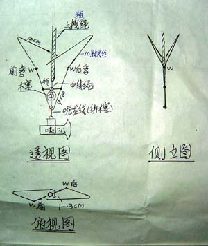 3. 把木塞围托进ø5孔卡住后拽上电线挂住后突然松绳。木塞等自重离孔,如不离孔可用力拽断线绳则粗绳下来。