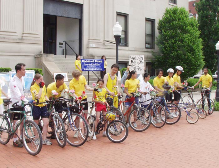 副校长说刚读到了有关亮儿在今年五月间参加的从华盛顿骑自行车到芝加哥的“和平花瓣”活动。副校长还说她很感动,因为亮儿关心并且愿意为那些在中国被迫害的法轮功孩子们做些事。而长途骑自行车是很不容易的事,副校长自己曾尝试过。所以她认为亮儿应该为自己所完成的心愿而自豪。