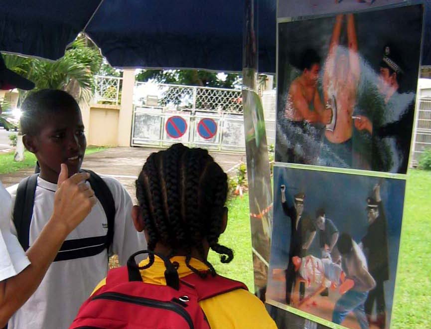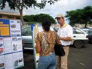 很多的孩子都走近了展览,他们非常认真的看了一张张的照片,他们还提出了很多的问题。法轮功学员们感觉到,当孩子们看照片时,他们已经感受到了那些被酷刑折磨的法轮功学员的疼痛。