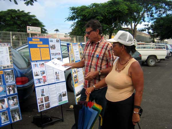 人们面对这么多痛苦的场景很受触动。他们永远也想象不出来,在当今的时代,如此的酷刑方法还被使用,特别是还被用在这些相信真、善、忍的和平的人群身上。这个展览向人们展示了这个功法的和谐,修炼者的祥和与暴力镇压的差别。
