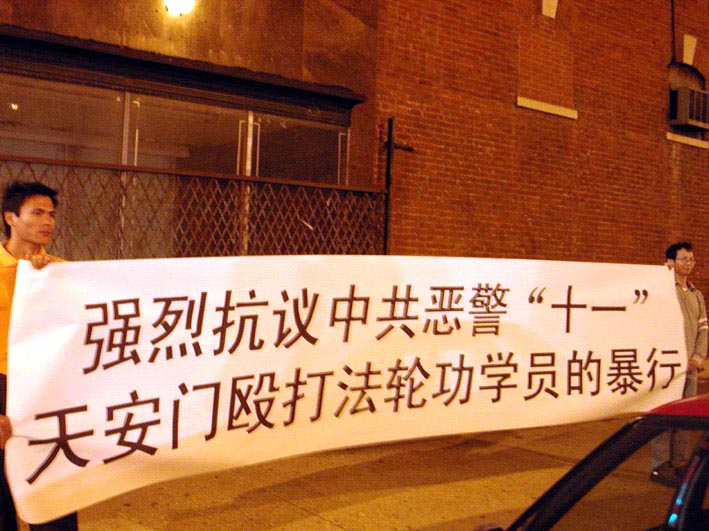 洛杉矶法轮功学员中领馆前抗议北京警察天安门暴行(图)