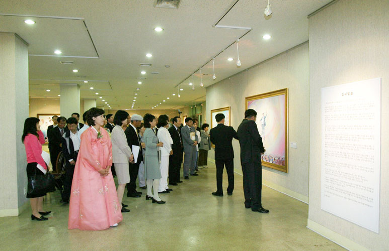 一般的展示会都需要严密的筹划、长时间的准备才能進行,但此次展示会的准备时间只有3天。办画展最难的就是找展馆。因为从现在到年底所有展馆都已预定完了。大邱的学员们3天内不分昼夜的進行准备。展览开始时,展厅负责人简直无法相信自己的眼睛所见,吃惊不小。水原市也是,展馆很突然的找到了,于是水原市及汉城等首都地区的学员们齐心协力做好准备工作,终于在9月30日成功的举办了开幕式。举办画展真可以说是对政府官员、舆论界人士等主流社会阶层讲真象再好不过的方法了。