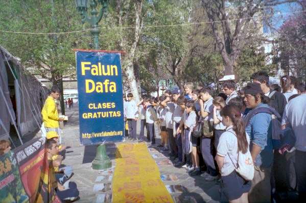 学员们展示功法时,周围的环境立刻安静下来,人们感觉到大法的能量,很多孩子们都要求父母让他们留下学习功法。听取真象的人都表示不能理解中国江氏集团针对修炼人的迫害。有一位天主教的女士告诉学员:这个跟那时耶稣的弟子一样,是好人被坏人迫害。了解真象后的人,特别一些媒体,表示将尽力把真象告诉大家。