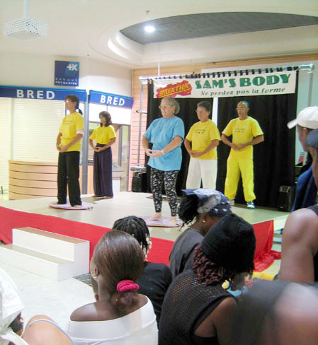 ![]() 学员向观众介绍法轮功、讲真象 | ![]() 功法展示 | ![]() 讲法轮功真象 |