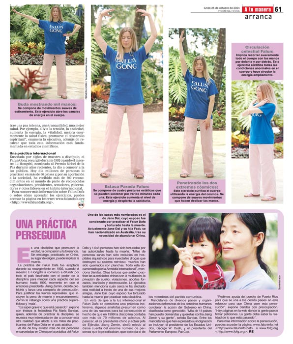 珊达斯关注的表示:“我们请求波多黎各人民的帮助,并与其它各国协力制止这场在中国发生的迫害。人们也可以在几个网站上的请愿书上签名。人们需要知道正在发生的真象。”欲对迫害真象作更详尽的了解,请浏览www.faluninfo.net或 www.fofg.org