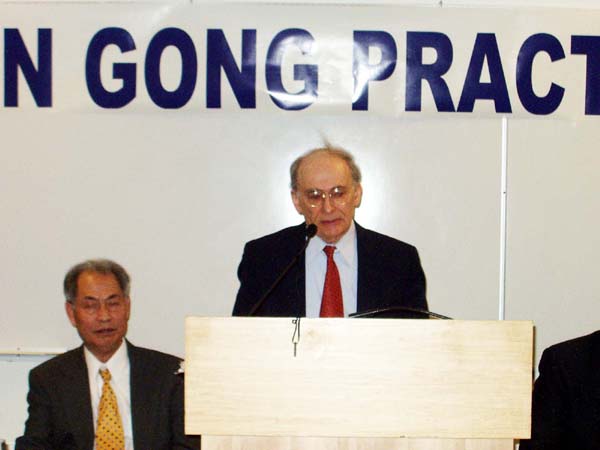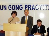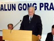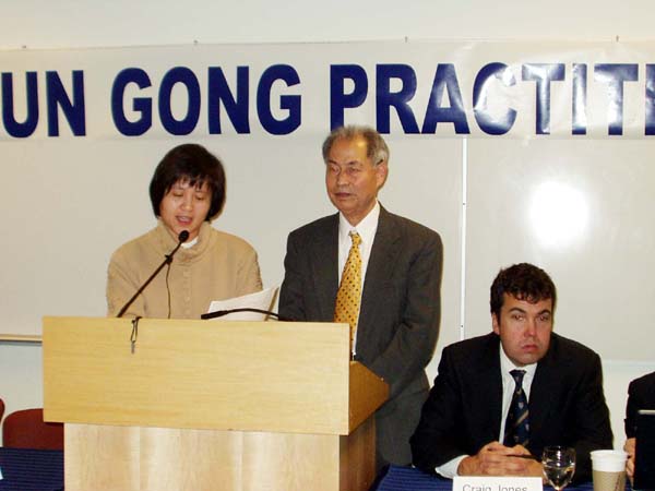 加拿大公民、法轮功学员张昆仑教授在新闻发布会上发言。