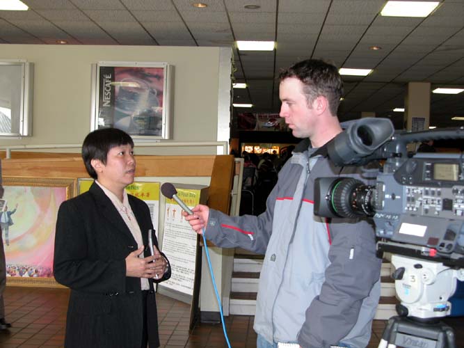 这次的画展,看的人很多。很多学生和教授都来看了画展。他们都从不理解迫害的始末到后来签了很多支持诉江的明信片。当地的人们很善良,他们对发生在中国的迫害情况很关心。很多人和法轮功学员们聊了很长时间。有5-6 家媒体来采访,都作了比较深入的了解。最初,很多媒体只把画展当成一个纪念性的画展,而没有想到迫害的严重性和它是正在发生的事实。与学员交谈过后,他们都停留下来,并做了详细的记录和采访。