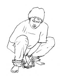 2000年3月,徐菊华被非法关押在广州天河看守所1年8个月。期间,由于徐菊华不接受转化,被关進禁闭室5天。徐菊华说:“在禁闭室里,他们把脚镣与手铐连在一起的,将我其中一只手从胯下伸过来与另一只手铐在一起;使我无法睡觉、行走,也无法站立、上厕所、吃饭,只有半蹲蹶着行走。”