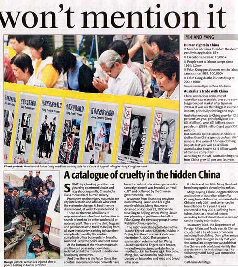 澳大利亚人报(The Australian) 11月15日刊登了记者凯瑟琳(Catherine Armitage)的文章,记者在文章开头写道,曾几何时,在一幢幢灯光闪烁的公寓区和时髦的购物中心的背后,中国却是一座人类痛苦不幸的沉重大山。