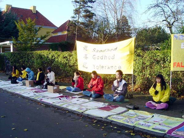 【明慧网2004年11月17日】2004年11月14日下午,丹麦及瑞典部份法轮功学员来到哥本哈根中国大使馆前,呼吁立即停止