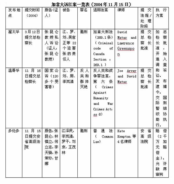 加拿大法轮大法学会会长李迅在接受记者采访时说,“如果说年初张昆仑教授在渥太华以酷刑罪起诉包括江在内的22名从上到下的各级官员(包括警察)的诉讼案中,可以看到这场迫害的系统性的话,那么,从温哥华和多伦多的诉江案件中,我们可以看到这场迫害的广泛性,仅加拿大境内,目前知道的就有百余名直接或间接受害者(受害人亲属)。”