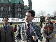 ![]() 新闻发布会:(从左至右:张昆仑教授,律师戴维-麦塔斯,加拿大法轮大法学会会长李迅) | ![]() 集会现场 | ![]() 集会现场 |