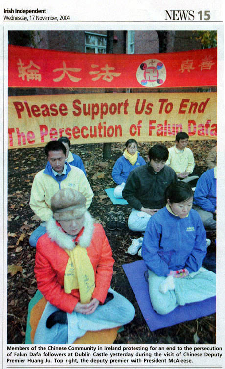 然而今非昔比,迫害元凶江泽民在多个国家都被告上法庭,许多迫害的积极追随者也相继接到诉状。法轮功在中国遭受的迫害成了爱尔兰媒体焦点。黄菊到都柏林的第二天一早,《爱尔兰时报》头版以《中国副总理因涉嫌酷刑被要求拘捕》为题报道了法轮功学员起诉黄菊一案。