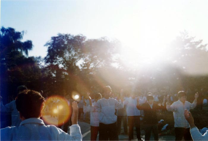 1998年下半年,由于糖尿病生命垂危的秦金秀由家人背到白玉山法轮功炼功点炼功。不到两个月的时间,秦金秀的糖尿病就痊愈了。