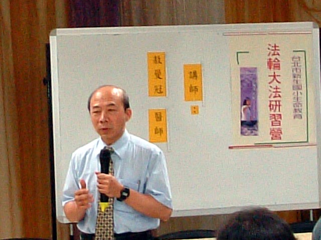 新生国小的一位朱姓家长,是一名英文教师,看到修炼法轮功的妹妹,也是一名小学教师,几年来的改变惊人,变得年轻健康、快乐有自信,智慧大开,写文章、画画还成为网路高手,永远有用不完的精力,觉得法轮功真神,听就读新生国小的孩子说暑假学校有法轮功教师研习,马上打电话报名。研习第一天回来告诉太太,这是他上过最有意义的一课,周日就带着太太和两个孩子全家一起参加研习,研习结束后,越看《转法轮》这本书越觉得内涵博大精深,就加入新生国小炼功点的炼功和集体学法。