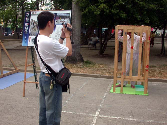 一对夫妇表情凝重的听着真象,太太掩面不忍卒睹那残酷的画面。“这是真的吗?太残忍了。”“你们应该广为宣传,让更多人知道。”“你们明天还办吗?我要带更多人来看。”“这种事就是应该揭露出来。”这些是这次的反酷刑展中最常听到的民众反应。