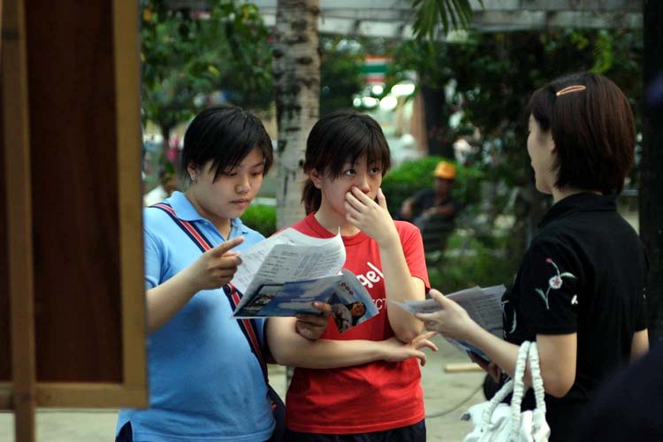 对面百货公司的逛街人潮,不断的往反酷刑展现场移动。只见学员一刻也不停歇,能说明白一个算一个,因为越多明白事实真象的人们发出正义之声,残酷的迫害也将提早一天被制止。
