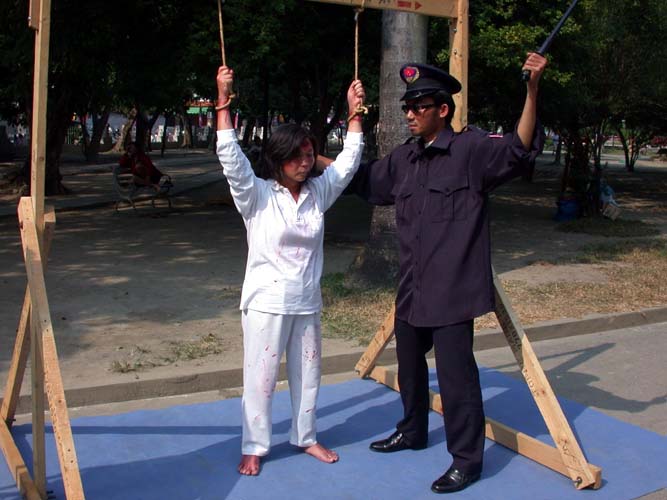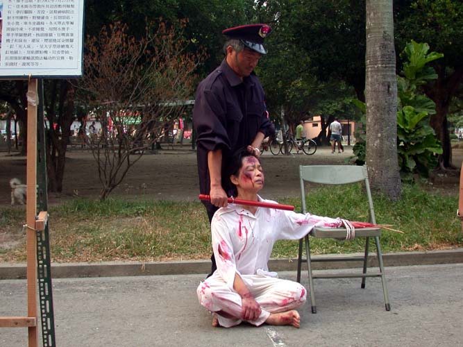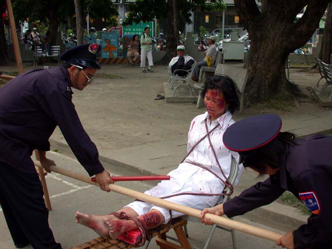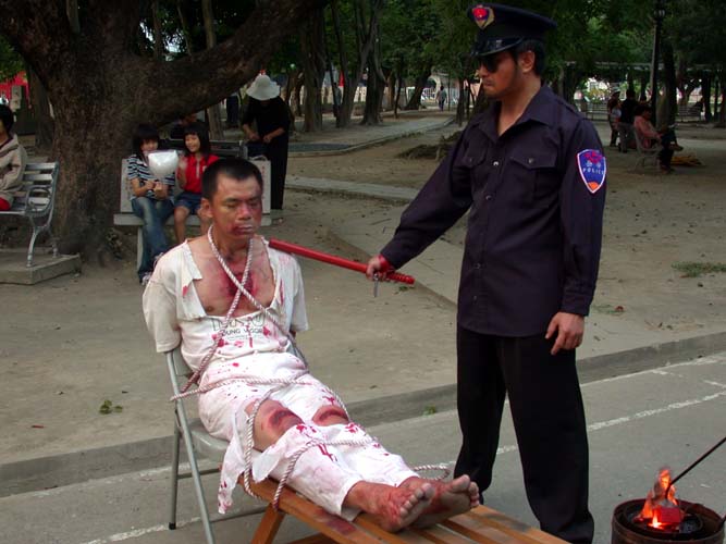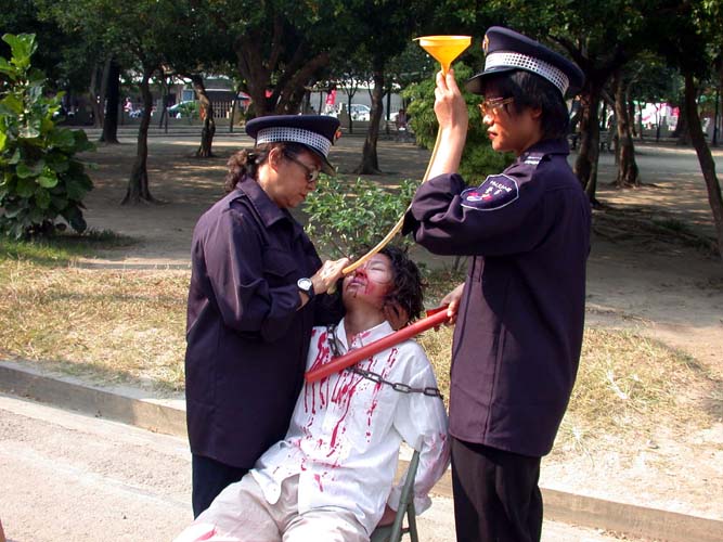 ![]() 烙刑 | ![]() 插竹签 | ![]() 灌食 |