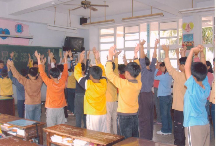 班级气氛溶洽:孩子们懂得用大法的法理“真、善、忍”去衡量一切的好与不好。遇问题、矛盾,找自己,凡事站在对方立场着想,打不还手,骂不还口,凡事先他后我退一步海阔天空,所以班上的是非很少。